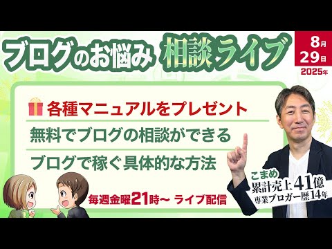 📣【毎週金曜 21:00~】ブログのお悩み相談 ライブ配信開催中!!