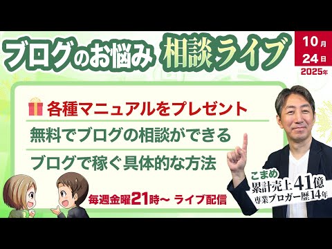 📣【毎週金曜 21:00~】ブログのお悩み相談 ライブ配信開催中!!