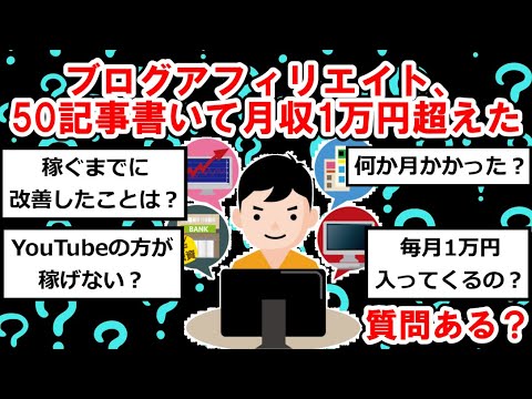 【アフィリエイトまとめ】ブログアフィリエイト、50記事書いて月収1万円超えたけど質問ある?って動画が話題らしいぞ