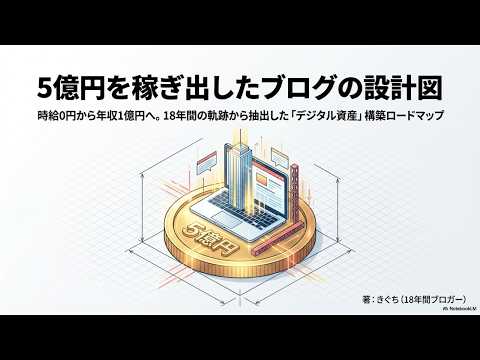 3年間収益ゼロ。コンビニアルバイトをしながら日記を書き続けた青年が、ある日「自分の話」から「読者の悩み解決」へとフォーカスを切り替えた瞬間、世界が動き出した。月296円のサーバー代で月収460万円を叩き出す仕組み、YMYL(医療・金融・法律)という触れてはいけない地雷、5秒の壁を突破する書き出しの技術、PREP法の実践、そしてGoogleアルゴリズムの激変による破産寸前の地獄——18年間ブログ一本で累計5億円を稼いだ「副業クエスト100」管理人・きぐち氏が全ノウハウを公開。